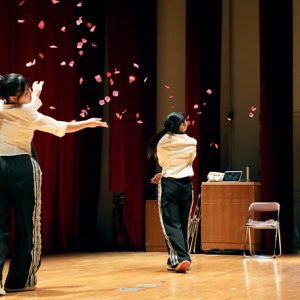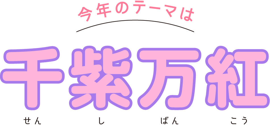 今年の文化祭のテーマは 「千紫万紅(せんしばんこう)」。 千紫万紅とは 色とりどりの花が 咲き乱れている様子を意味します。 生徒一人ひとりが ひとつの花となって個性を活かし 学校全体を鮮やかな紫色に染めたい! さまざまな紫で華やかにしたい! そんな思いをこのテーマに込めました。 (ポスターデザイン 3年3組 塩田紗夕)